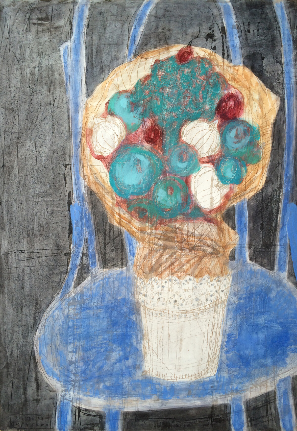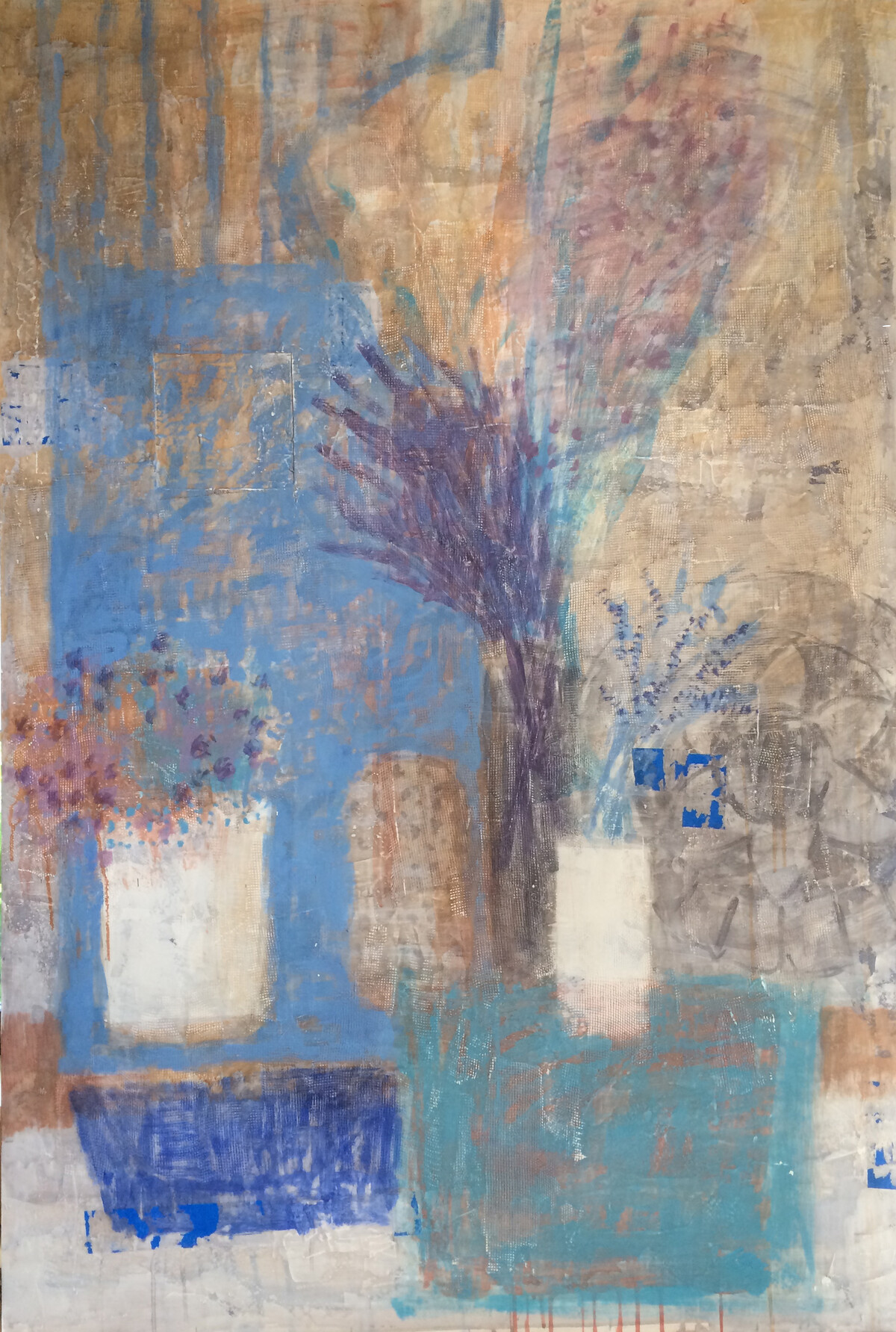 Курс провоцирует смелость. Вот сама я бы не решилась в данный момент на какие-то техники, а с подачи Елены – рискнула, позволила себе. Например, делала копии Сезанна, Пикассо на а4. Знакомыми материалами. А потом вдруг закружилось и завертелось: шпаклёвки, печать, коллажи из ткани, размашистые абстракции кистью флейц… форматы пошли А3, А2… Это было очень важно. Расшевелили меня эти эксперименты.