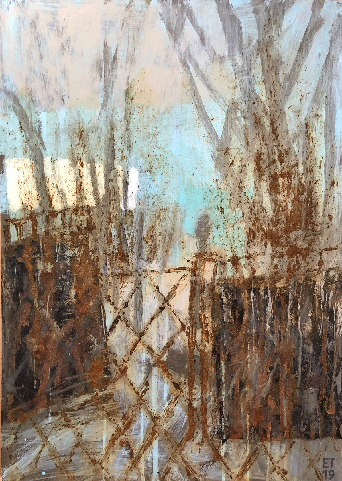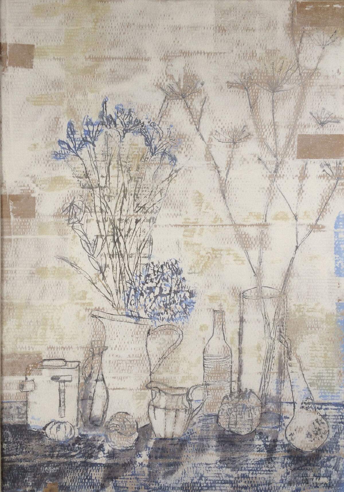 В процессе возникали сомнения и неуверенность (в основном связано это было с выбором темы и страхом не справиться или не получить желаемый результат). Основные трудности с которыми сталкивалась: 1. Это рисовать что-то абстрактное, условное, отталкиваясь от натуры и реального (существующего) пейзажа. 2. Страх формата. 3. Эскизная часть и перенос композиции на формат (т.к. обычно в своих творческих работах я обходилась без эскизной части и поиск был уже в процессе работы). Открытия : 1. Работать сериями не так сложно как может показаться. 2. Слишком серьезное отношение к результату иногда очень мешает. 3. Для работы можно использовать любую основу и чем она проще тем лучше, меньше страхов (испортить) и больше свободы.