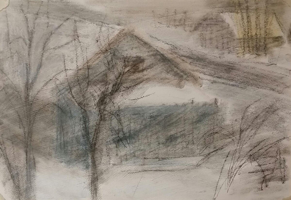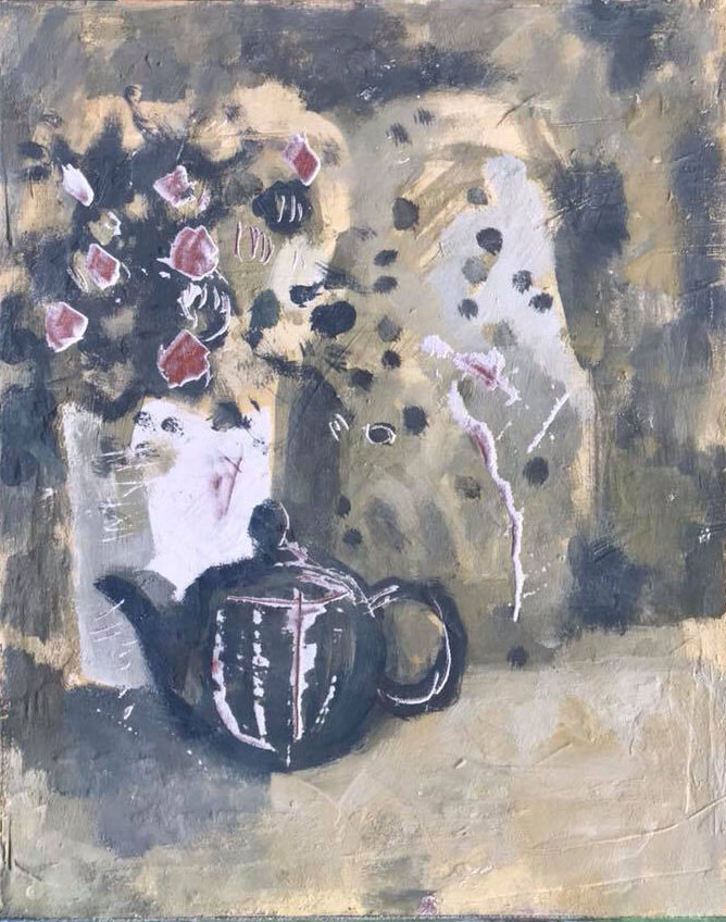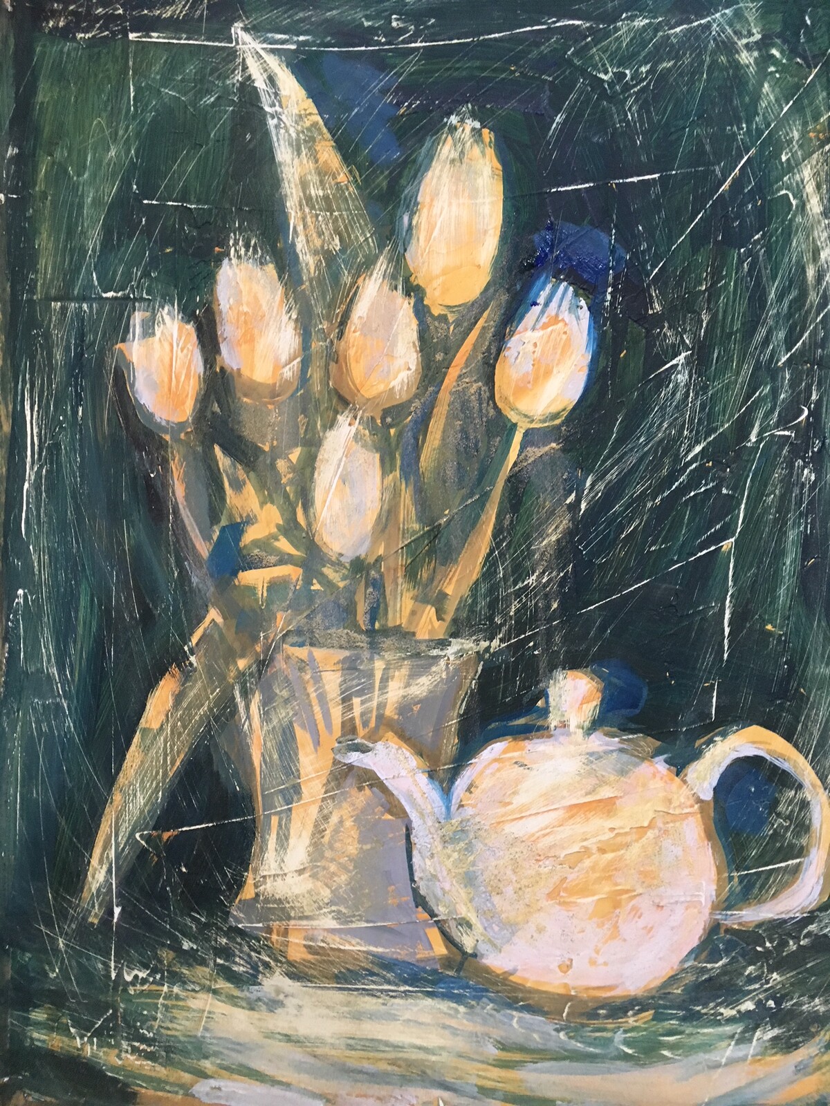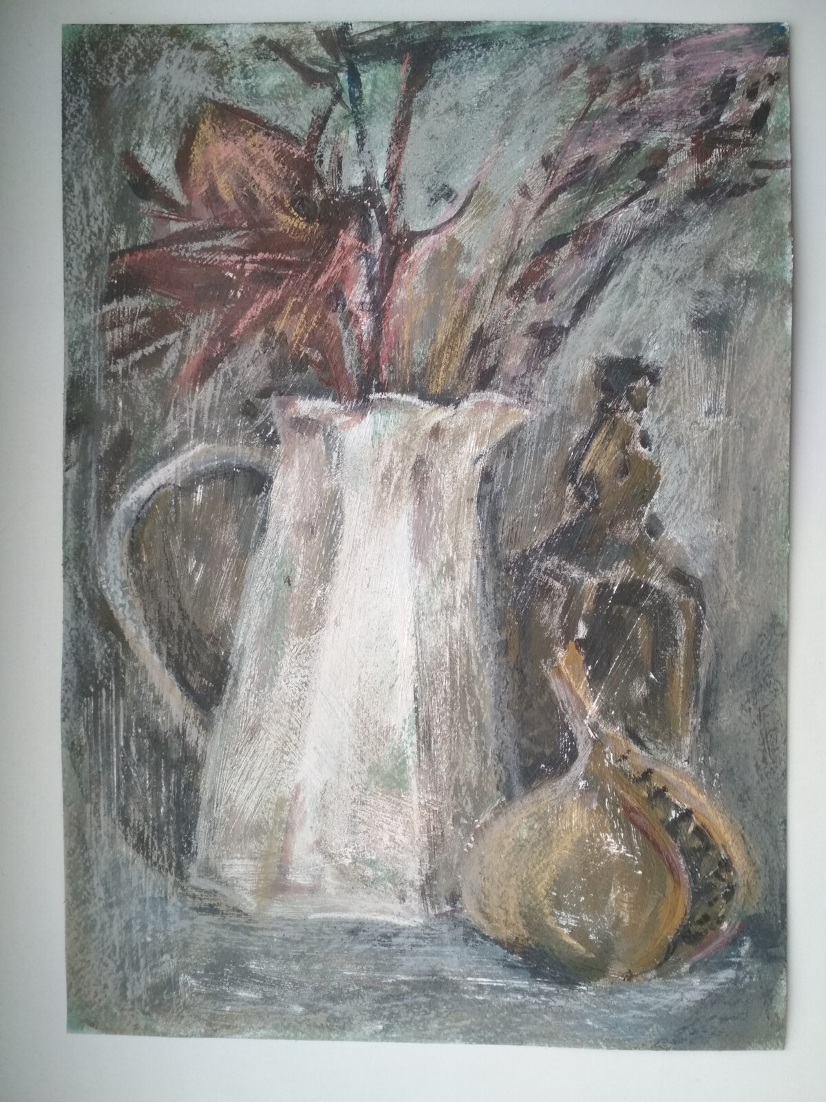 Честно сказать, дома стояла начатая на холсте работа, которая запнулась из-за трудности взаимодействия с материалом.