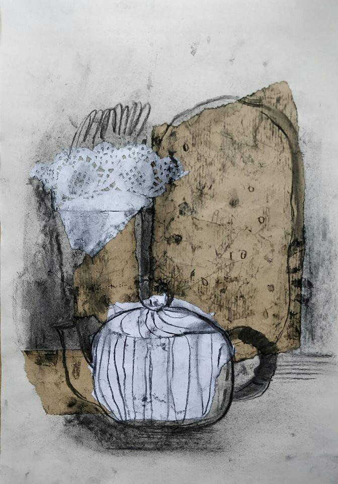 Желание вернуться лишь подтверждение того, что дело не только в самих приемах, а в чём-то большем, — в том большем, которое всегда светится в работах самой Лены и к чему хочется приобщиться через общение с ней, через учебу у неё. Это всего четыре урока и восемь заданий, но они встряхивают, побуждают подняться с насиженного тёплого места и шагнуть в неизвестность (помните? — «…и окунаться в неизвестность, и прятать в ней свои шаги…»). Никто не отменяет любви к традиционным живописным и графическим техникам, но их смешивание — это как питательный раствор, на котором чувство материала, поверхности, вариативность мышления и внутренняя свобода просыпаются и начинают бурно расти. Да, никто не гарантирует, что каждый эксперимент будет удачным, но вкус к поиску уже сам по себе дорогого стоит, и если вы не ищете мастер-классов в духе «сегодня мы научимся рисовать реалистичный помидор», а настроены на поиск, размышление, эксперименты, на работу с разнообразными материалами, извозившись в них по локоть, то этот курс станет отличной и очень весомой инвестицией в собственные творческие ресурсы.